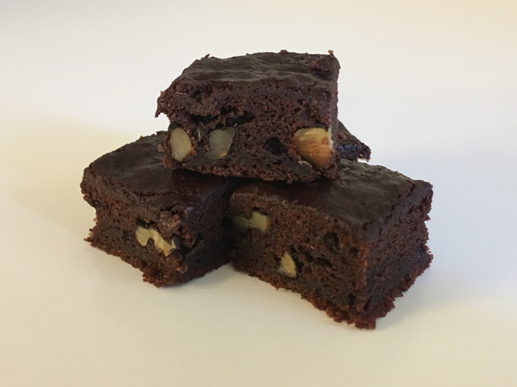 Feine vegane Brownies mit Baumnüssen. Grösse = ca. 3x3cm / Die Mindestbestellmenge sind 25 Stück und kann in 15er Schritten erhöht werden.