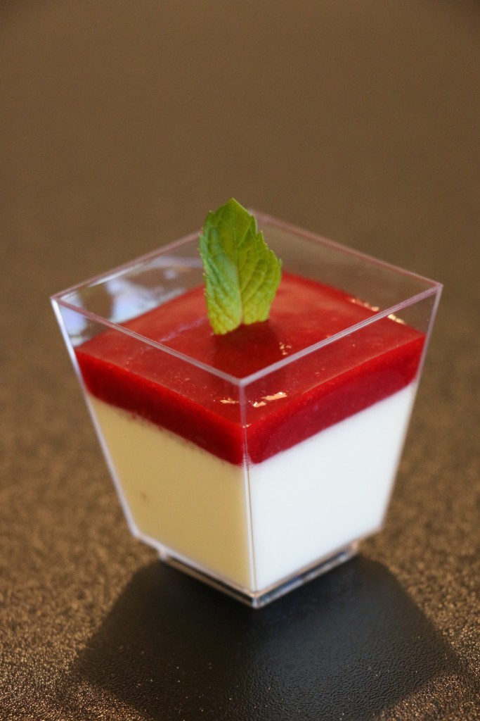 Panna Cotta mit einem Hauch von Himbeer-Coulis und einem Schuss Amaretto