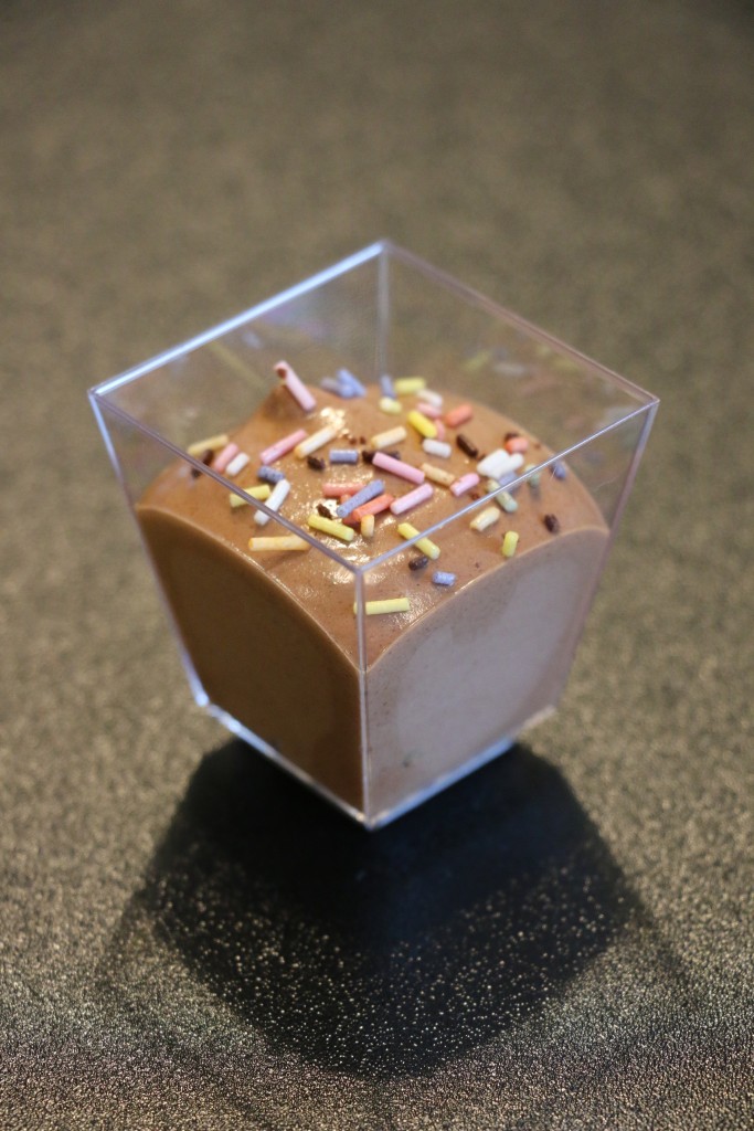 Feines Mousse au Chocolat hergestellt aus Toblerone mit Zuckerdekoration.